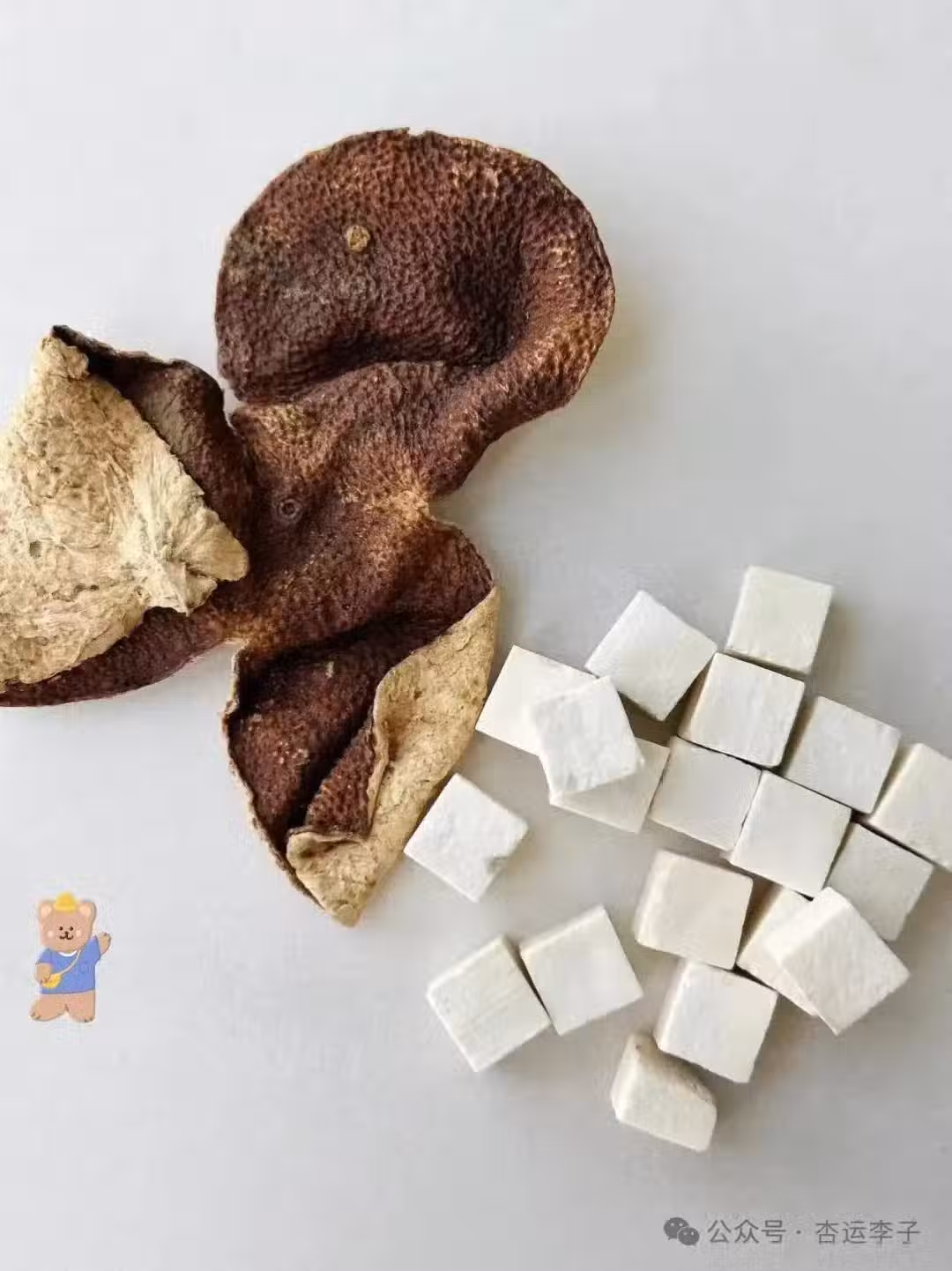把陳皮和茯苓用溫水洗乾淨一起下鍋,加足量的水,大火煮開後轉小火煮20分鐘左右。