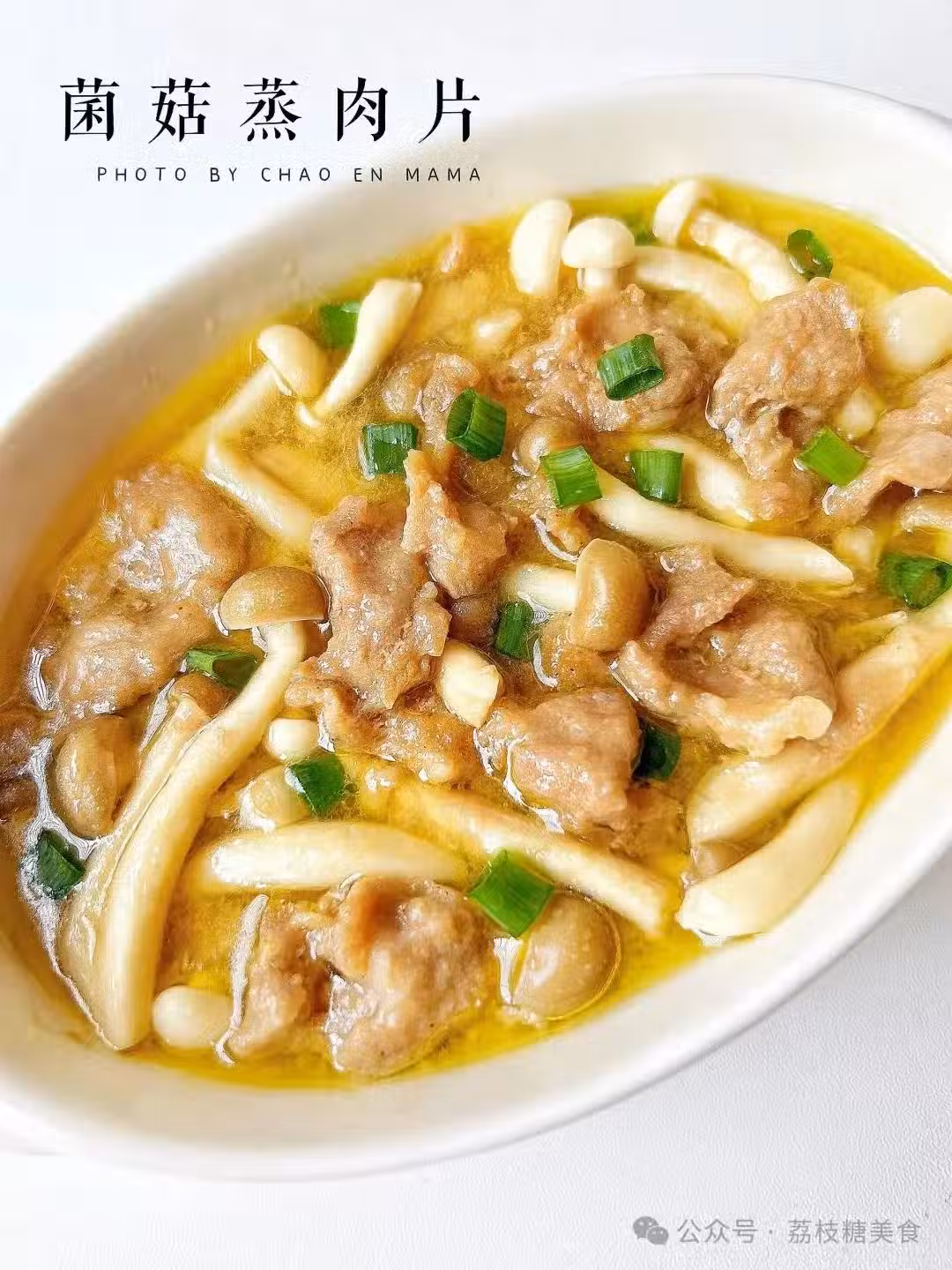 口感鮮嫩,肉香撲鼻,菌菇爽口,營養蒸菜不上火,還能補鐵。 食材: 菌菇,豬梅花肉。 做法: 1.豬肉加澱粉、醬油、蚝油、胡椒粉、適量油攪拌均勻腌制20分鐘。2.菌菇洗乾淨鋪盤子裡加點鹽拌勻,腌制好的豬肉鋪上去,加蔥姜。3.水開大火蒸12分鐘即可。小貼士:可根據個人喜歡選擇菇類,個人比較喜歡海鮮菇!