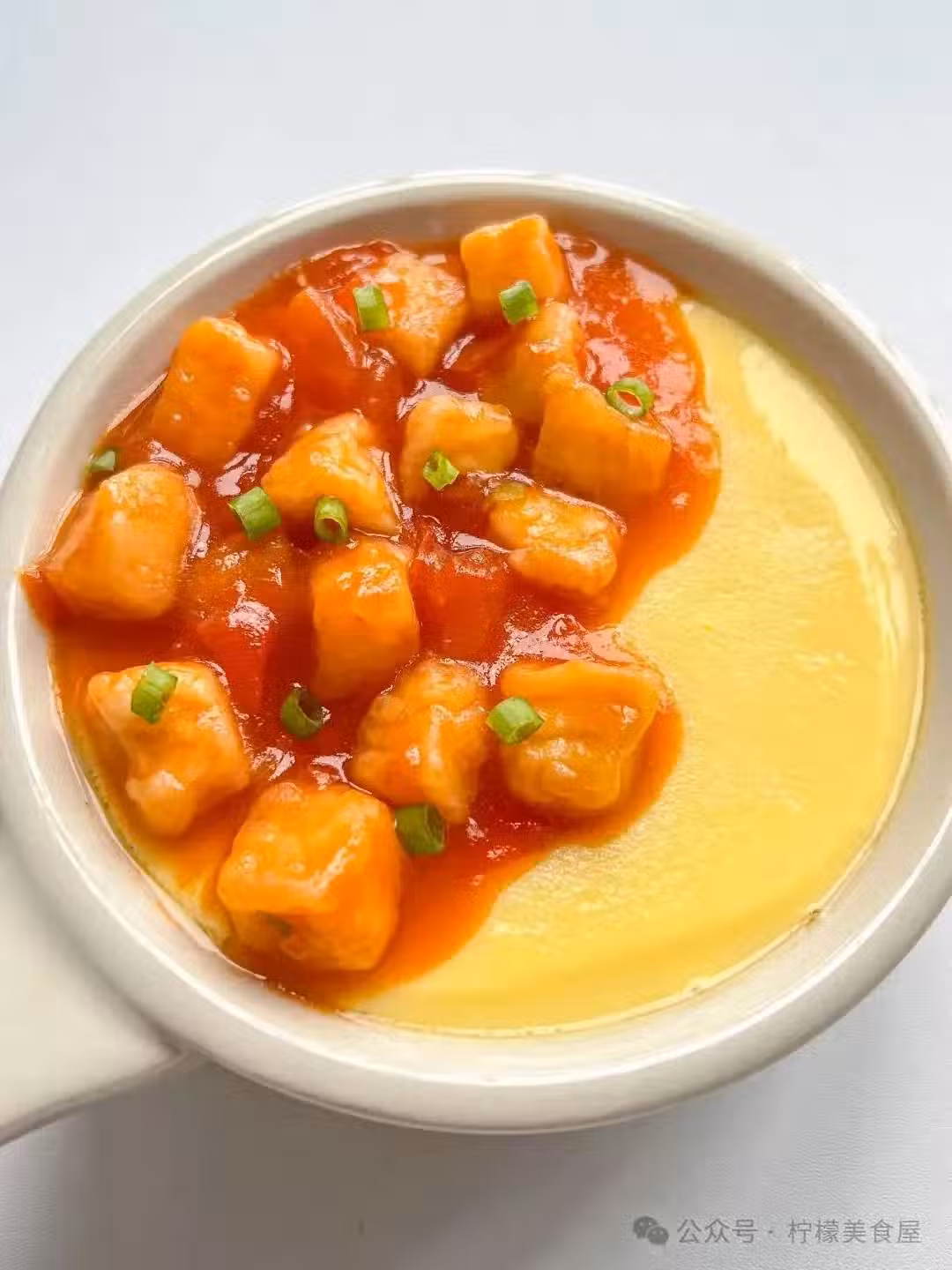 小孩子就要多吃魚,三文魚補充營養、促進生長、改善視力。不愛吃魚的孩子,做成這樣,酸酸甜甜,特別好吃。搭配上蒸蛋,吃起來真的絕了。 孩子喜歡挑食的,建議多做這款茄汁三文魚蒸蛋,好吃得很。我每次一做,孩子都特愛吃。作為媽媽,我也是真的開心!三文魚也可以換成鱈魚、鱸魚。 食材: 雞蛋、三文魚、蔥花、番茄、澱粉、醬油、番茄醬 做法: 1、準備一個碗,打入三個雞蛋,加60ml溫水攪拌均勻。蔥花清洗乾淨切碎。 2、攪拌好的蛋液過篩到蒸碗中,蓋上保鮮膜,水開上鍋蒸10分鐘,關火燜2分鐘即可。 3、三文魚清洗乾淨切塊,放到碗里,倒適量澱粉裹一圈。 4、鍋里倒油,油熱放三文魚塊,小火煎至金黃盛出。 5、另起鍋,放入蔥花炒香,番茄清洗乾淨,去皮切碎放鍋里,翻炒出汁,倒入煎好的三文魚。 6、倒醬汁:澱粉、醬油、番茄醬、適量水拌均,炒至濃稠,撒上蔥花即可。再倒入蒸蛋上。