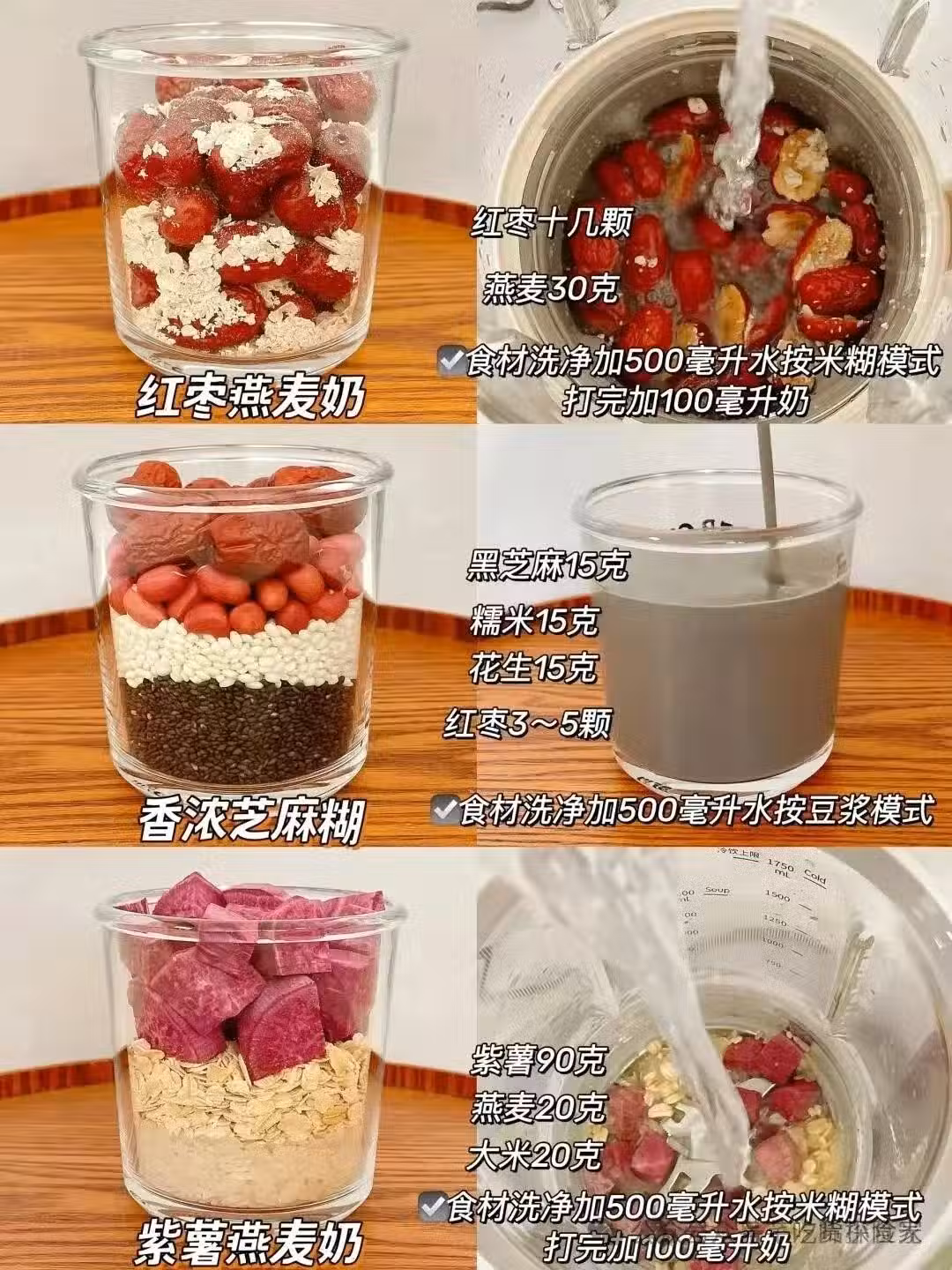 準備食材:紫薯,燕麥,大米,水,牛奶。