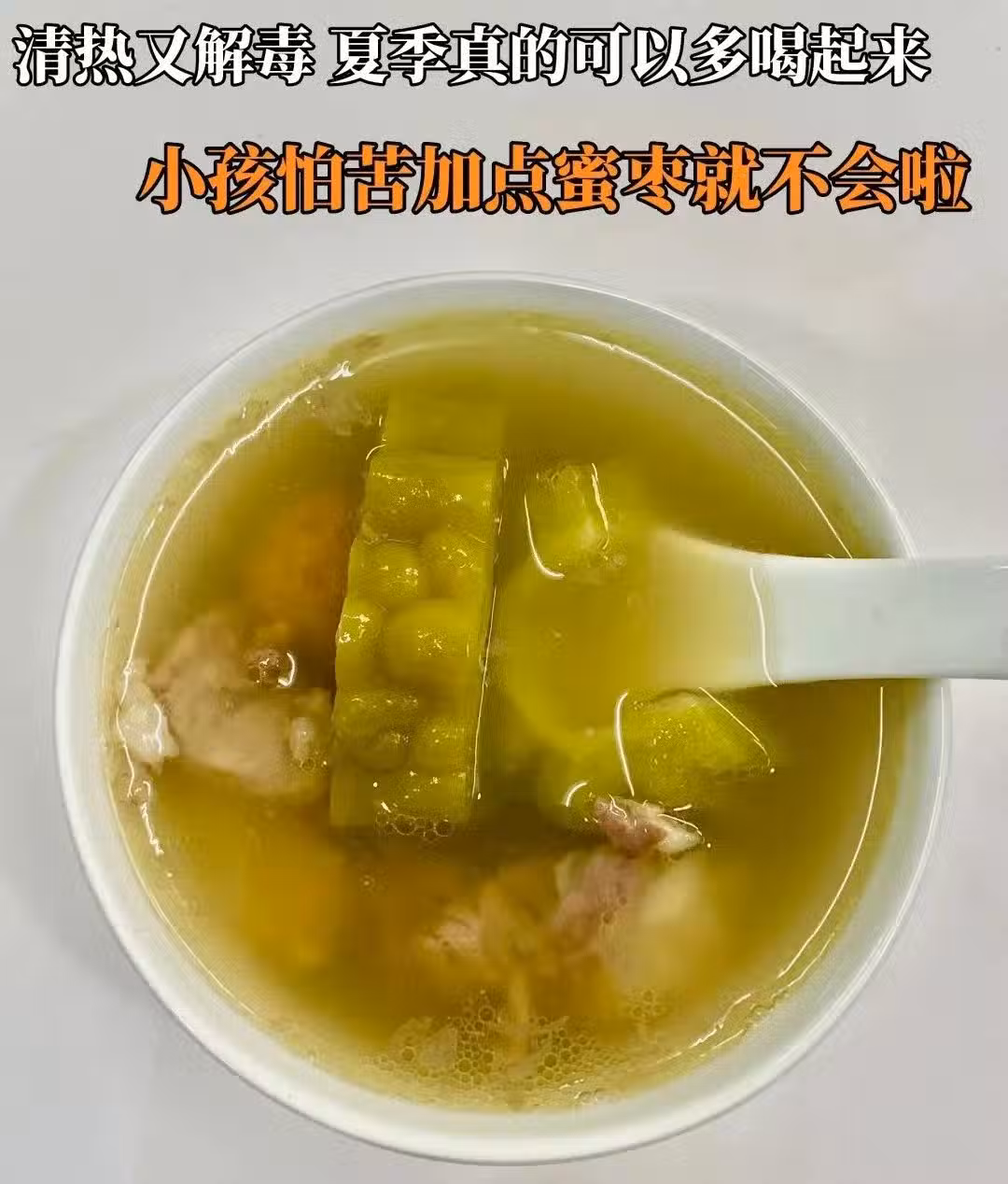 廚房小白也能做:焯水的排骨與食材共舞1.5小時,加點陳皮化解苦味,出鍋前撒上靈魂枸杞。乳白湯底泛著翡翠般的苦瓜片,入口先苦後甘,仿佛山澗清泉流過舌尖。