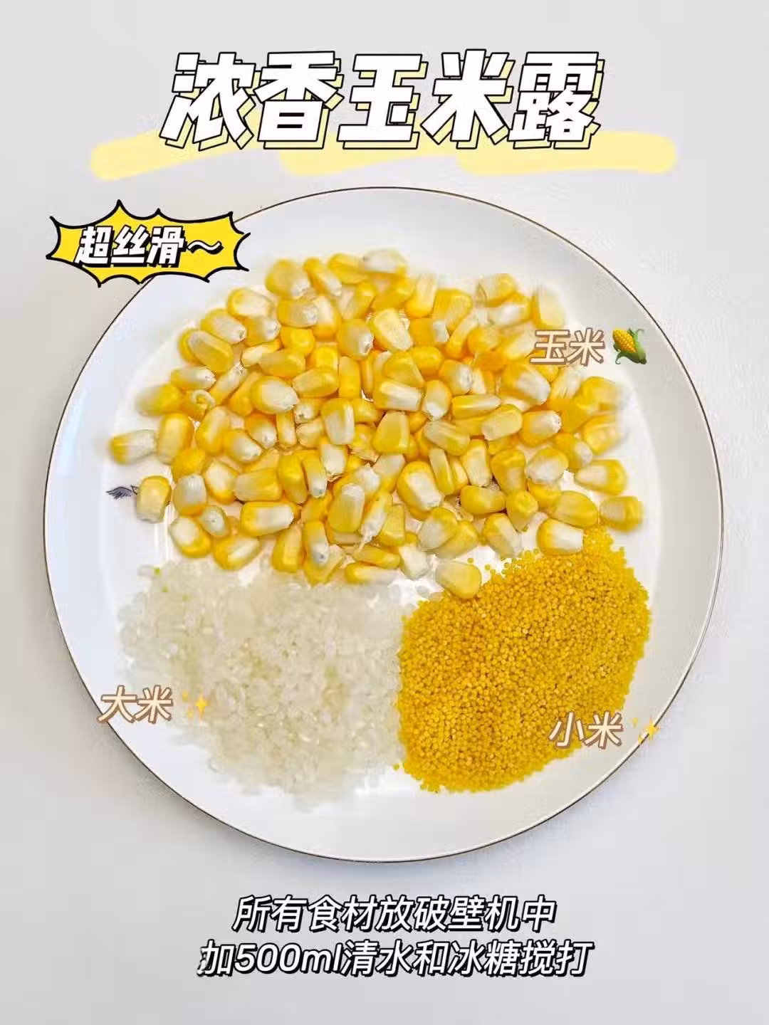 ☑️食材:玉米+大米+小米
