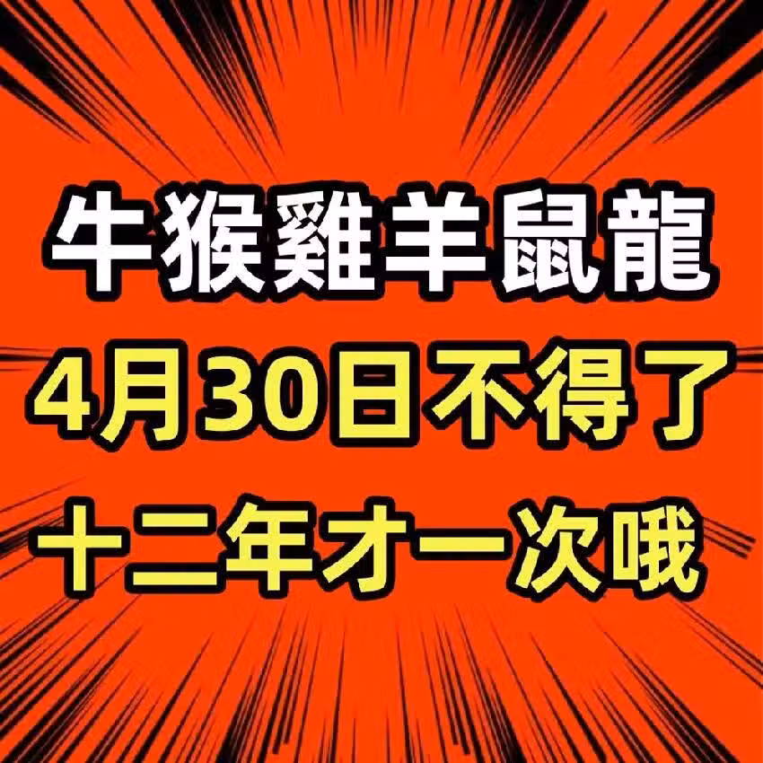 生肖(牛猴雞羊鼠龍)火了,4月30日不得了,十二年才一次喔!