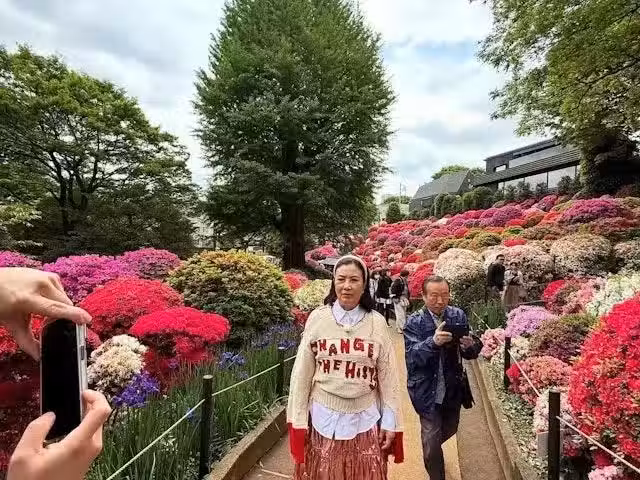 不過,此次阿姐卻是相反,本應該在杜鵑花面前顯得人比花嬌的汪明荃卻是黑了臉。莫非這位年輕人周奕瑋惹怒了阿姐嗎?從圖片中看,阿姐確實穿得也比較時尚,服裝也搭配得很適宜,顯得阿姐十分年輕,一點兒也沒有大媽味。