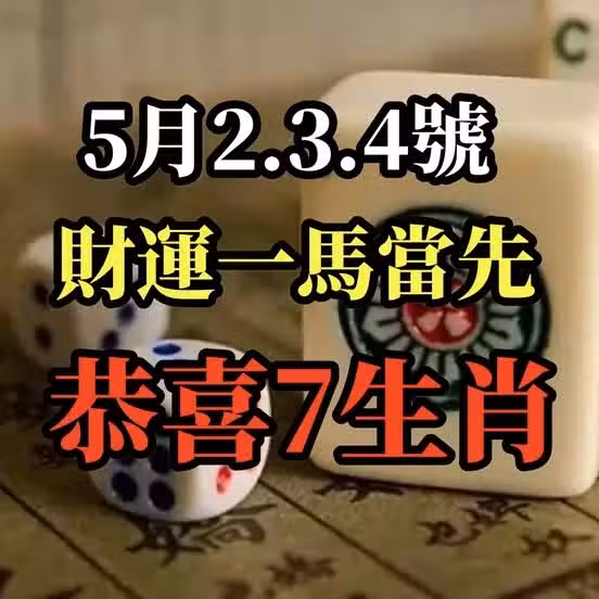 5月2.3.4號財運一馬當先,恭喜7生肖鈔票滾滾來~
