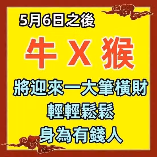5月6日之後(牛、X、猴)將迎來一大筆橫財,輕輕鬆鬆身為有錢人。