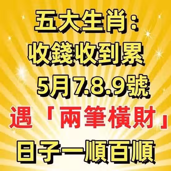 收錢收到累!5月7.8.9號遇「兩筆橫財」日子一順百順的生肖