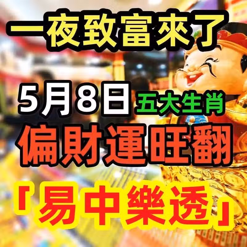 一夜致富來了!5月8日偏財運旺翻「易中樂透」的生肖.