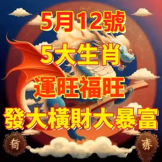 5月12日運旺福旺,遇大喜事,發大橫財,大暴富的5大生肖!