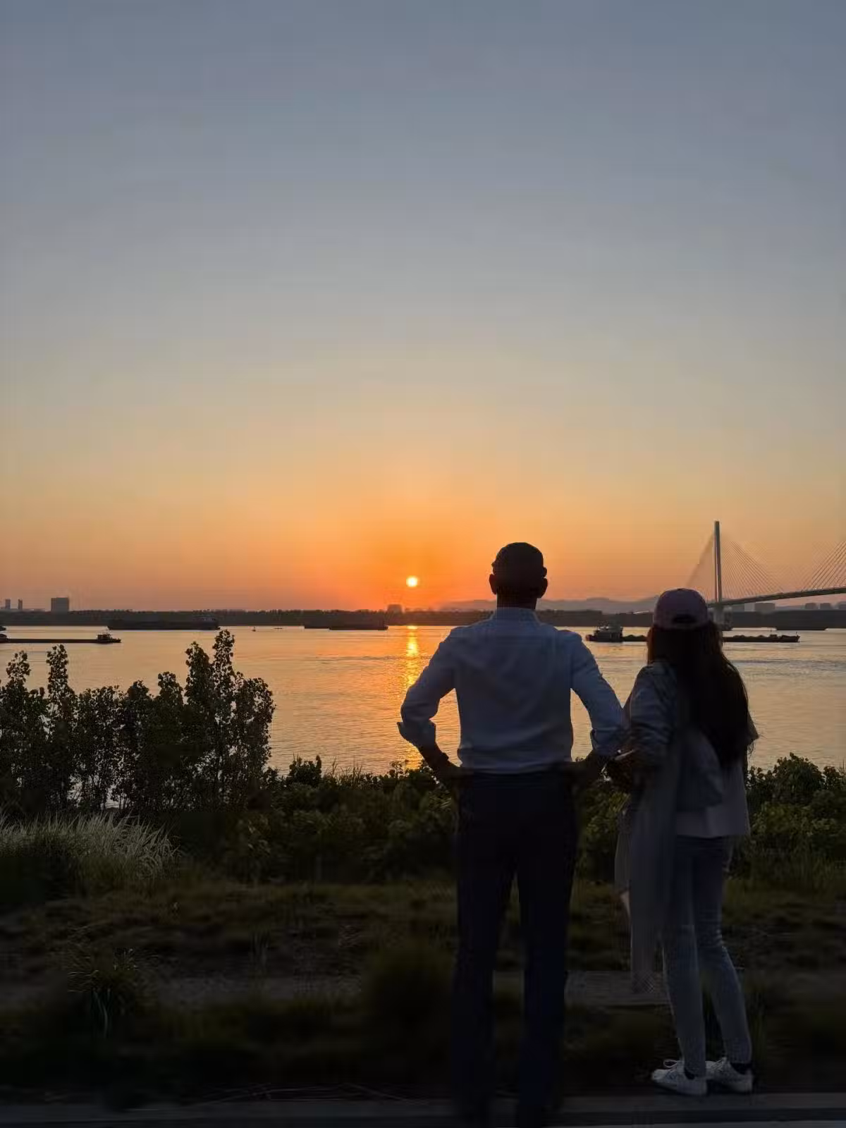 莫文蔚和老公現身南京江心洲,牽手散步看日落,像偶像劇一樣浪漫