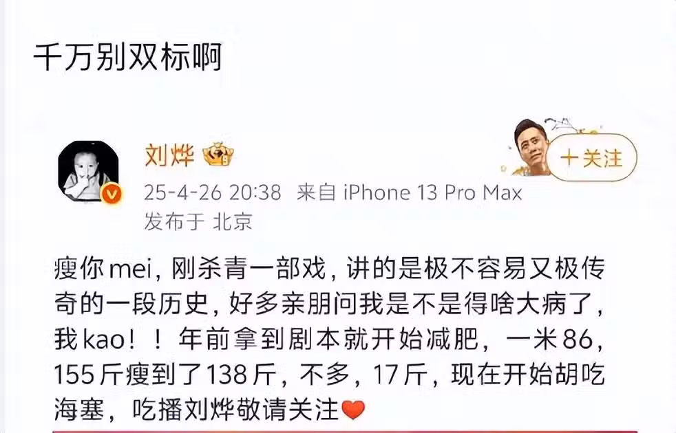 能夠看到劉燁在4月26日回應暴瘦時,也用了「瘦你mei」三個字。但是劉燁並未遭到網友的嘲諷,可能粉絲認為針對這個嘲諷趙麗穎很沒有道理吧,也顯得不太公平。