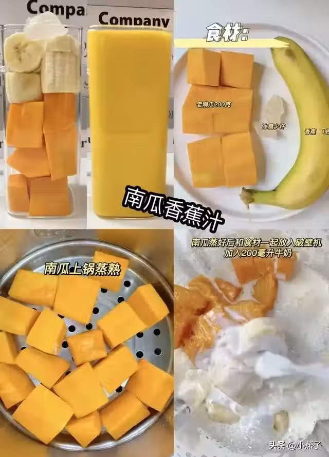 做法:南瓜蒸軟後+牛奶攪打,可加少許冰糖。
