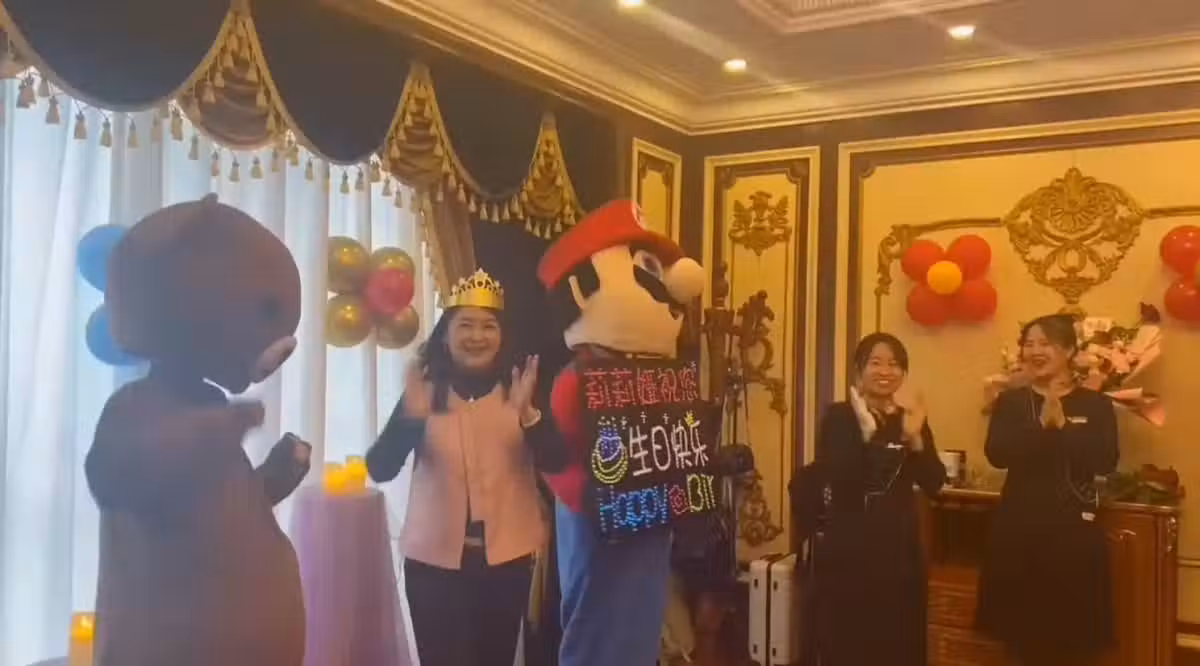 胡慧中在大慶過67歲生日,在餐廳與服務員又唱又跳,女兒丈夫作陪