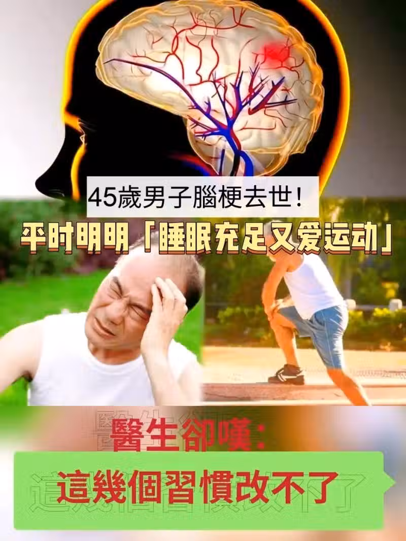 隔壁社區那45歲的老李,平時身體好得很,愛跑步又睡得好,結果前幾天腦梗去世了!