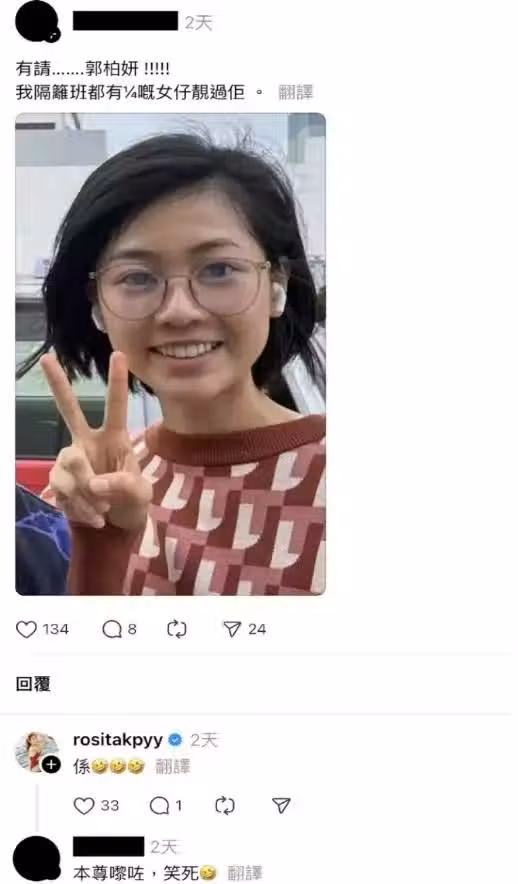 只希望她之後穿短裙或短褲時,注意儀表問題。沒想到郭柏妍又再次回復,知道了。由於她回應問題時,表現的很友善和高情商,不少網民都不相信是本人回復。