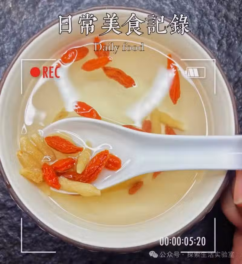 1️⃣把枸杞和麥冬放進杯子裡,要是麥冬比較乾燥,可以稍微沖洗一下。