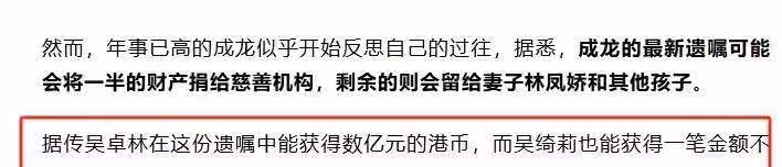 那就是成龍似乎給吳卓林留下了一筆巨額的遺產。