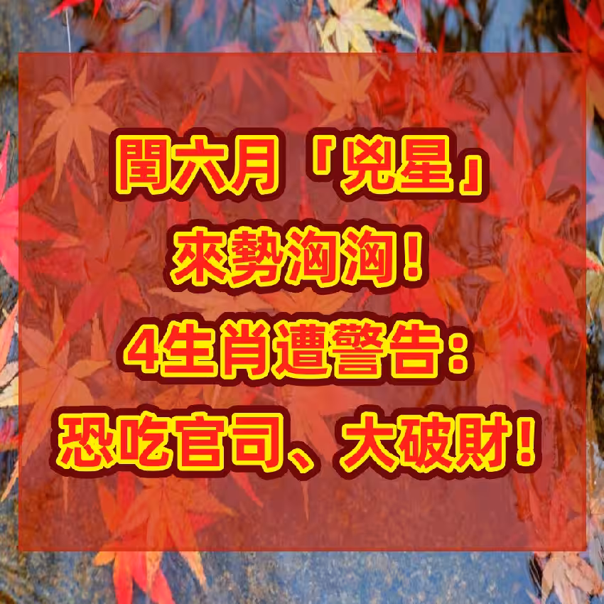 尤其是這一個閏六月,還疊加了「三煞入中宮、破軍化忌星動」的星象格局,等於打開了「命運震盪+氣場翻盤」的風險窗口,若你的八字或生肖與這波負能量相衝,就要特別小心官司、病災、人際衝突或意外破財。