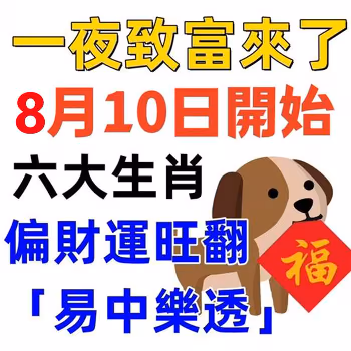 8月10日開始偏財運旺翻,六大生肖「易中樂透」