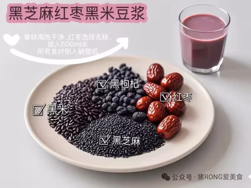 黑芝麻紅棗黑米豆漿 紅棗5顆+黑枸杞+黑米30g+黑芝麻60g