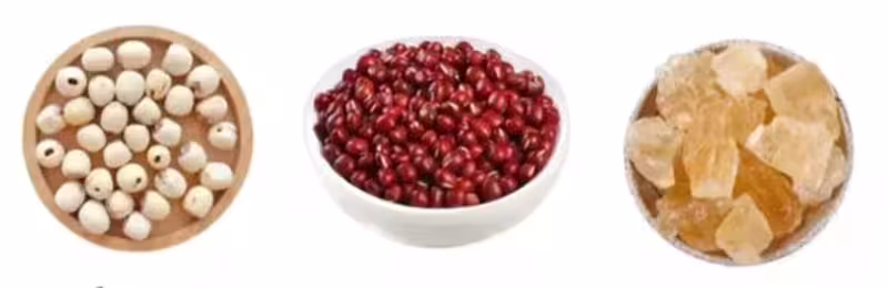 食材清單:蓮子10克、赤小豆10克、老冰糖適量
