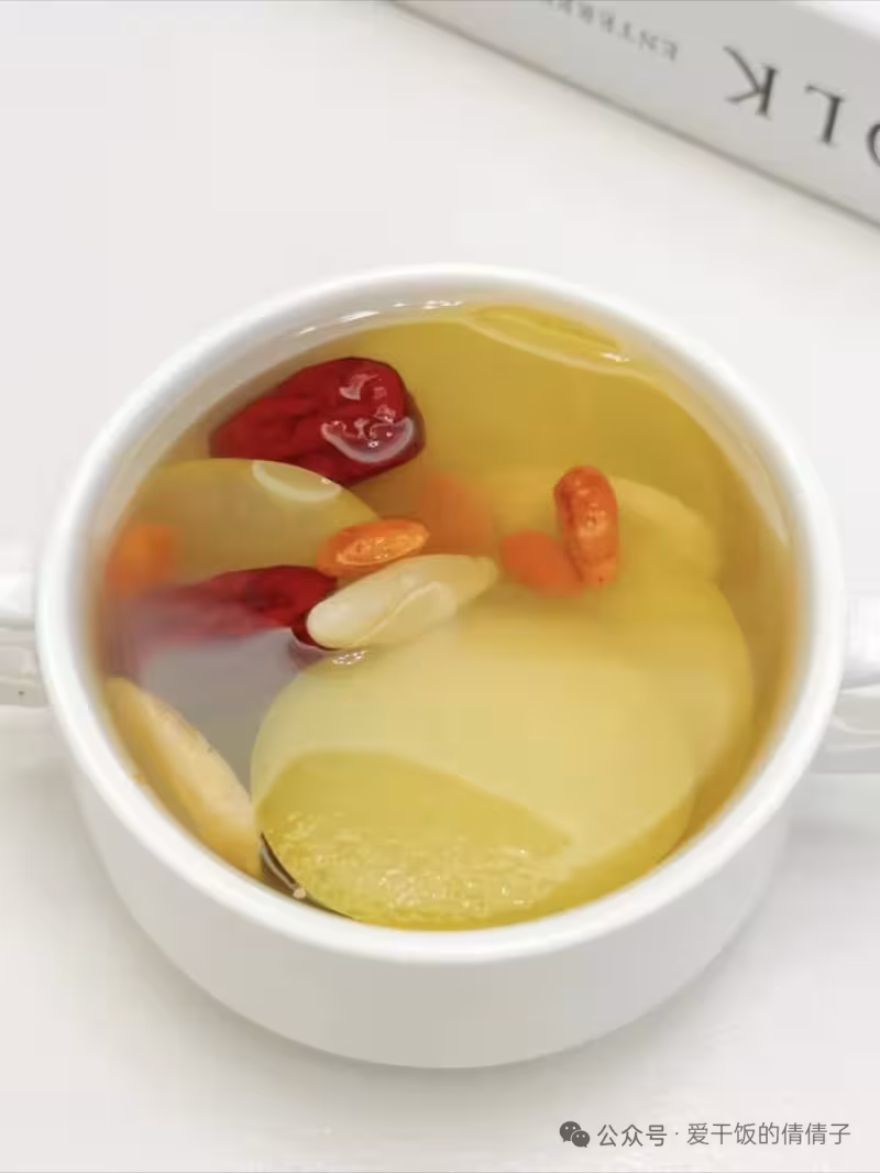 黃芪紅棗蘋果水 【食材】蘋果1個(切塊)、紅棗4顆(去核)、枸杞5克、黃芪5克、麥冬5克