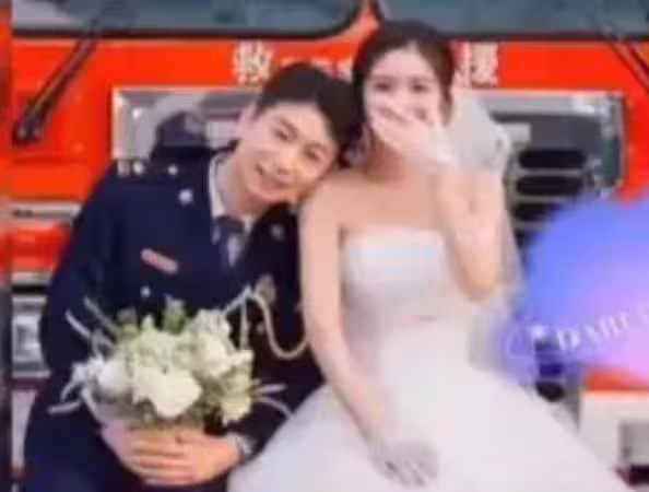3個月後,這名女子與救她的消防員走入婚姻,兩人的超甜蜜婚紗照在網絡上曝光後立刻引起廣大網友熱議,他們還在消防車前拍婚紗照,紀念兩人別具意義的相遇!