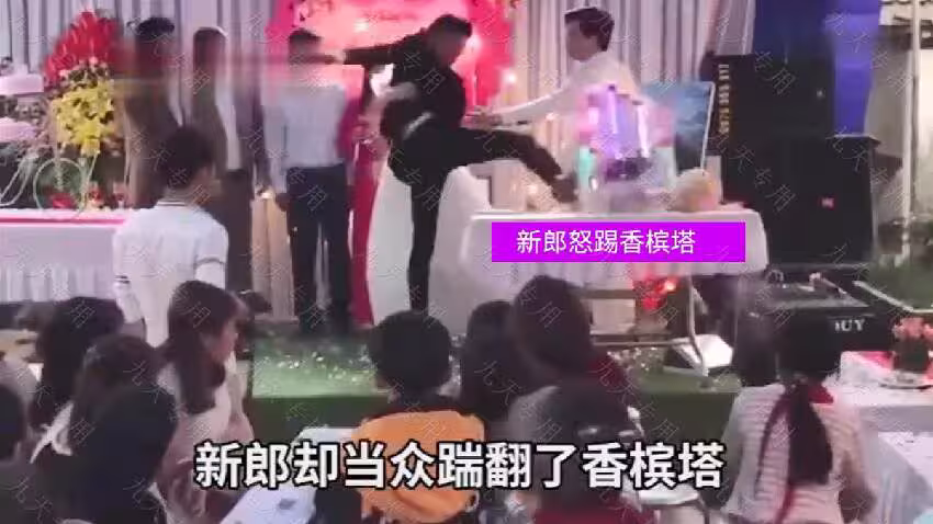 賓客們有人上前勸阻,有人拿出手機記錄下這一幕,整個婚禮現場陷入混亂。