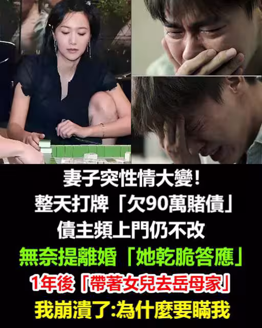妻子打牌!性情大變「欠90萬賭債」仍不改,提離婚「她秒答應」1年後「帶女兒去岳母家」我崩潰:為什麼要瞞我
