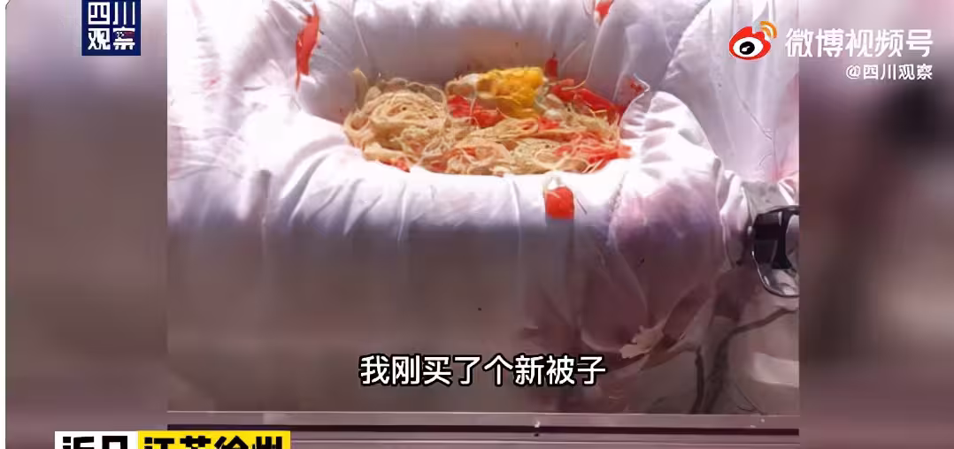 無奈的女子只能隔空喊話:「究竟是誰做的事情自己承認,這是誰家做的飯,誰心裏面清楚。我剛買的被子,用都沒有用是新買回來的。現在你把我的被子弄成這樣,我也不說別的,你把這個被子拿走,多少錢折現金,要不然就把被子給我洗乾淨。」