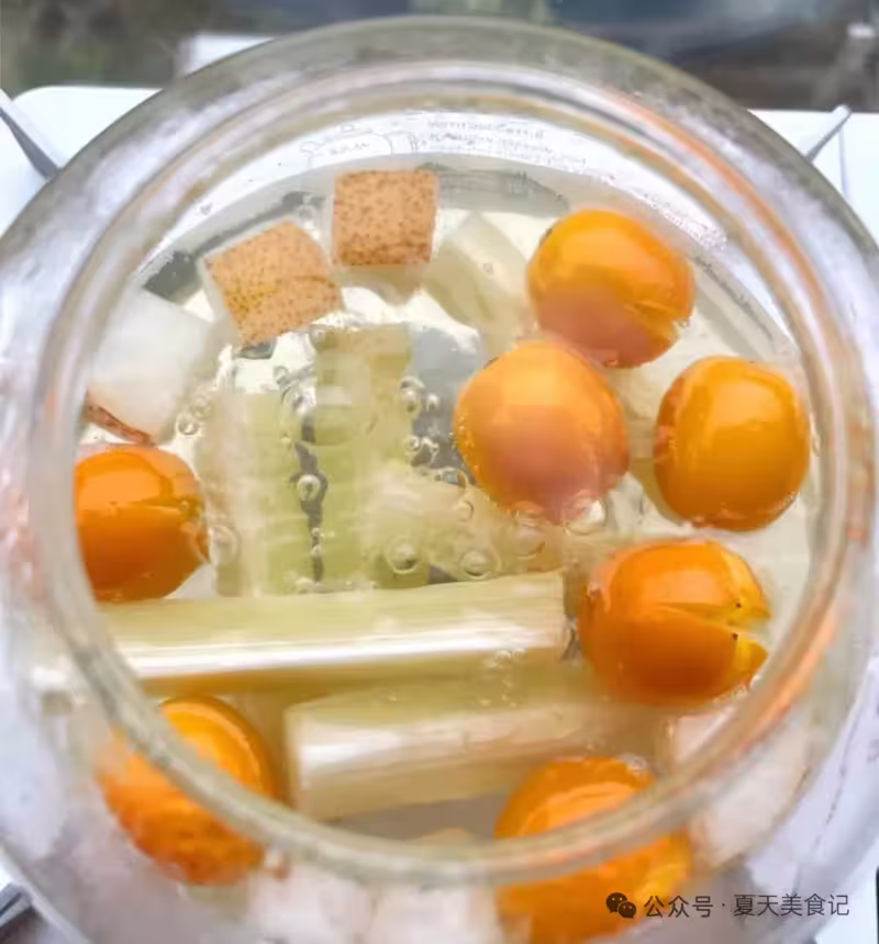 ✅做法:梨切成小塊,金桔對半切,甘蔗去皮後切成小段,一起放放養生壺清水煮開。香甜的雪梨甘蔗水就好了。喝上一口,酸酸甜甜的。