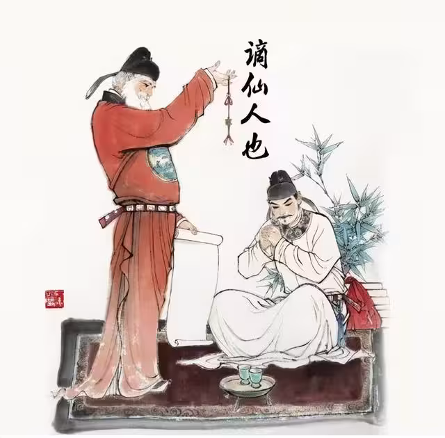當李白向賀知章呈上自己的一首《蜀道難》,賀知章看後大為驚喜,對詩歌中的磅礴氣勢讚嘆不已:「這是謫仙人啊!」