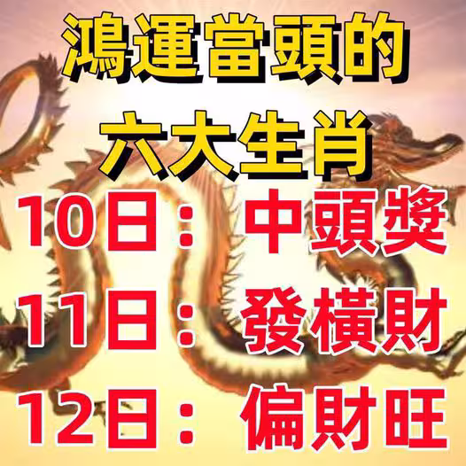 鴻運當頭的六大生肖:9月10日中頭獎,11日發橫財 ,12日偏財旺。