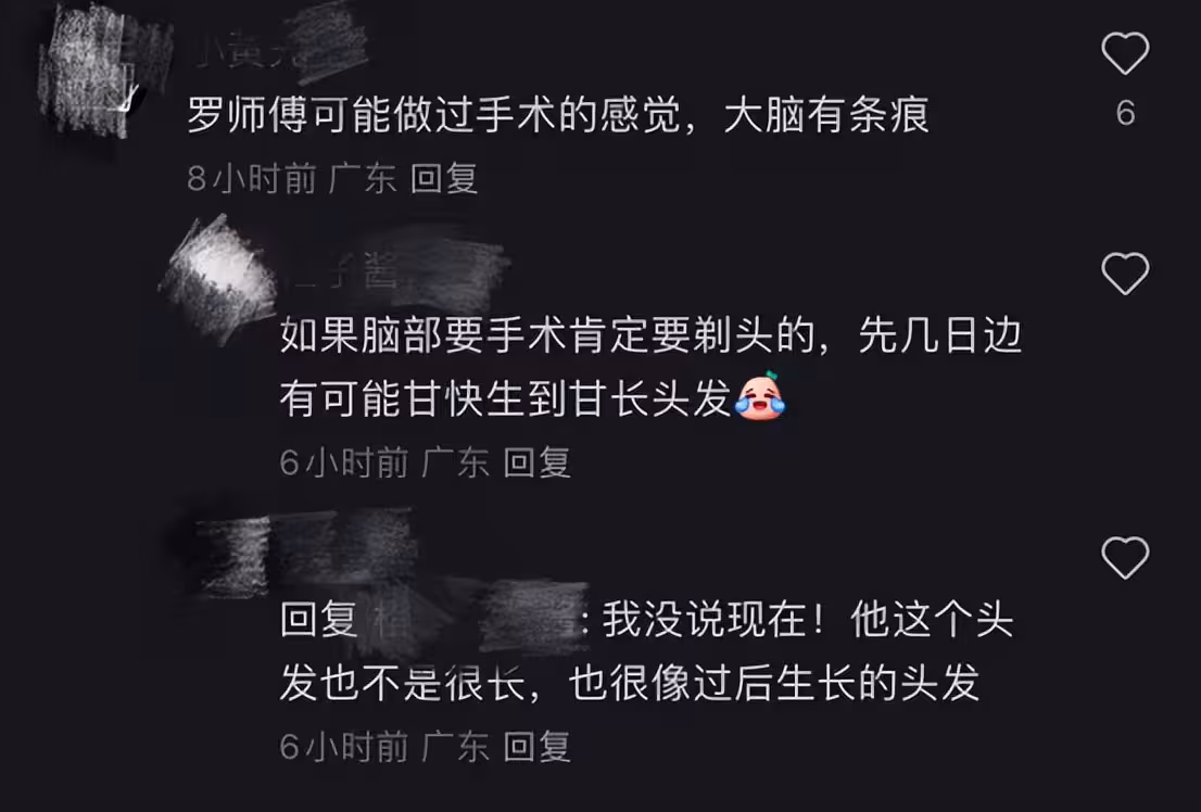 還有眼尖的網民看到羅莽的耳朵上方有條疤痕,懷疑羅莽可能前不久剛做過腦部的手術,並認為羅莽目前的髮型,很像剛做完手術不久,剛剛長出來的樣子。
