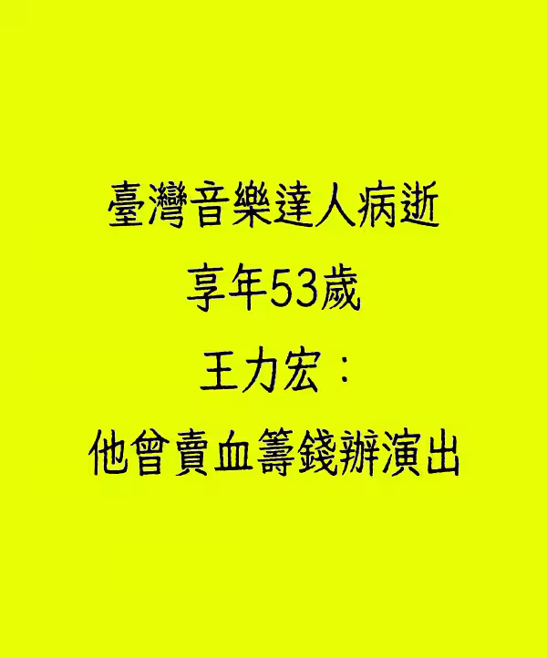 台灣音樂達人病逝,享年53歲,王力宏:他曾賣血籌錢辦演出