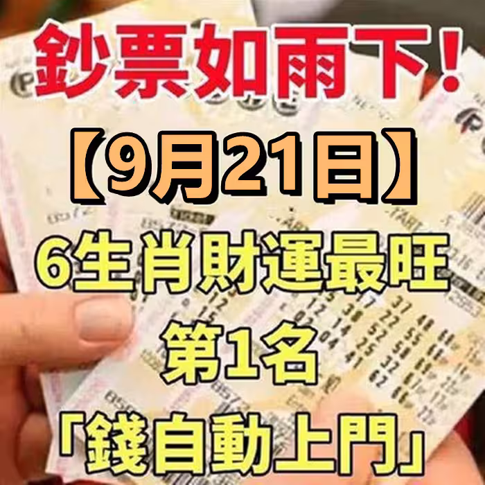 恭喜了7大生肖,在未來三天( 9月20~23日)即將有一筆橫財,準備好收錢吧