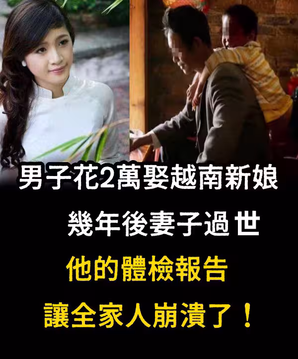 男子花2萬娶越南新娘,幾年後妻子過世,他的體檢報告讓全家人崩潰了~