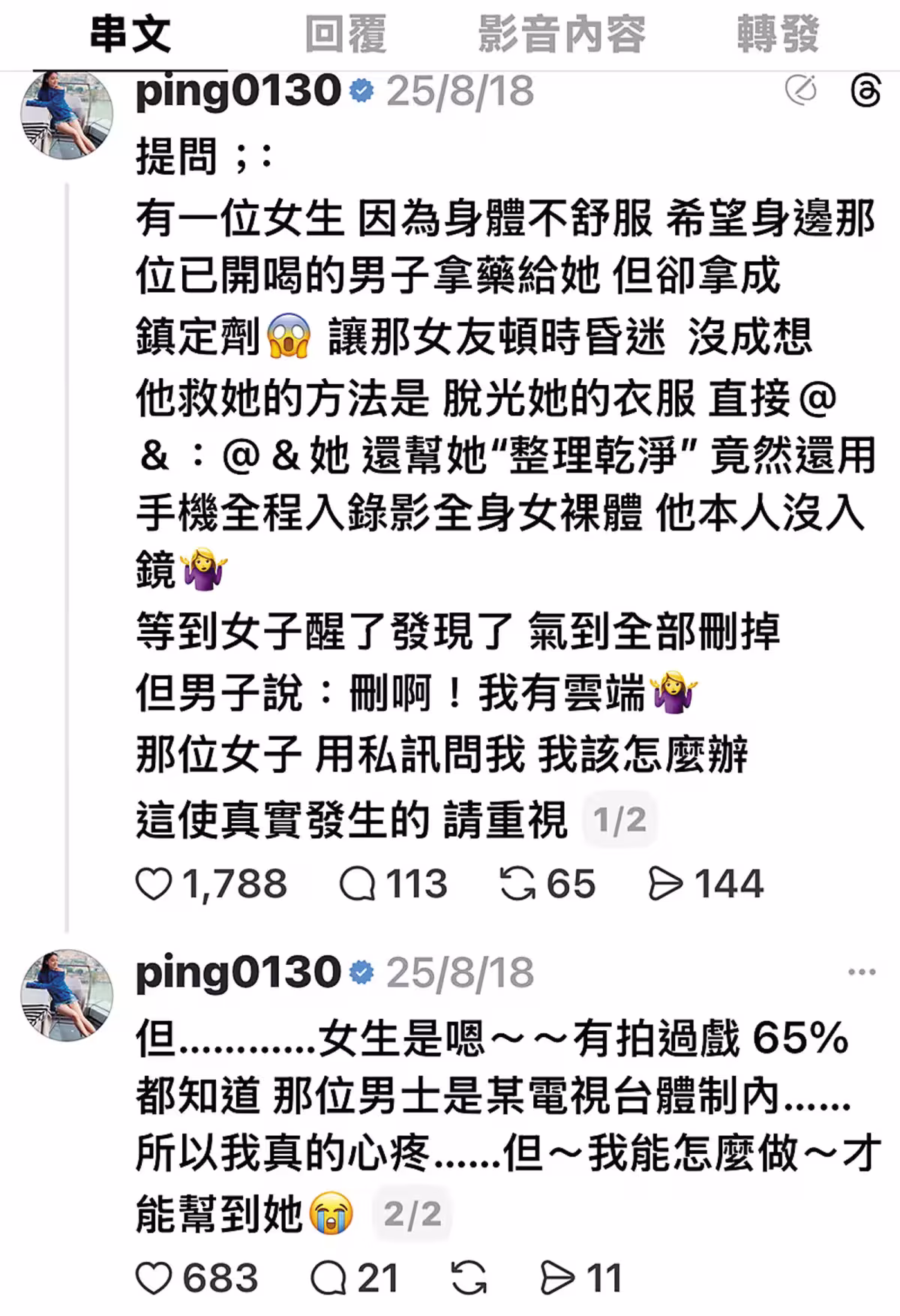8月18日,江祖平擔憂不雅影片外流,隱匿受害者身份上網發了求救文。(翻攝自江祖平Threads)