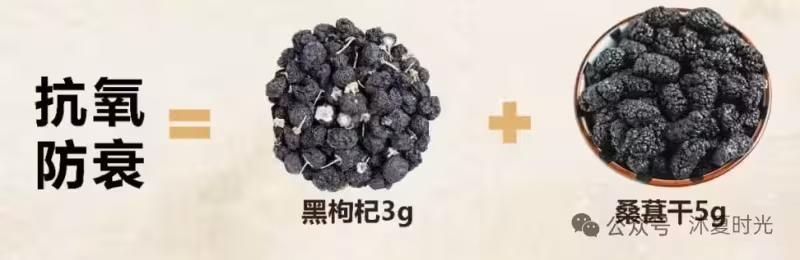 原理:桑葚補肝益腎,黑枸杞扶正固本,針對「精血不足」導致的早衰。