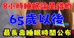 「8小時睡眠論」是錯的!老年人65歲以後,最長壽睡眠時間公布.