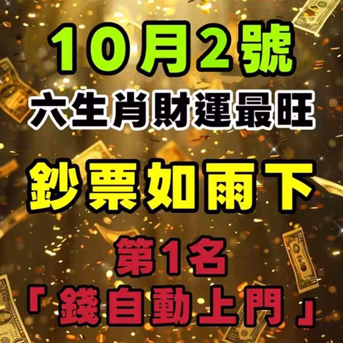 【10月2日】六生肖財運最旺 ,鈔票如雨下!