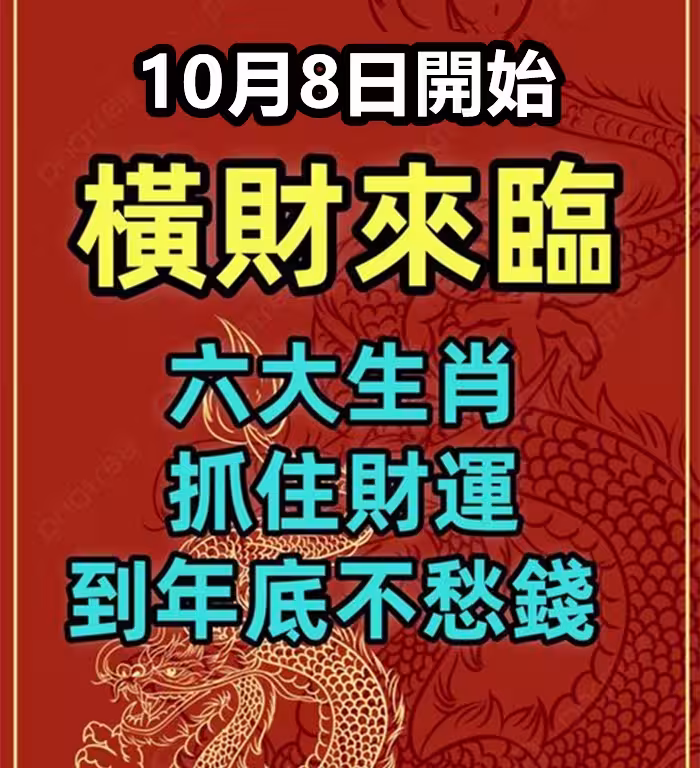 10月8日開始橫財來臨,六大生肖抓住財運,到年底不愁錢