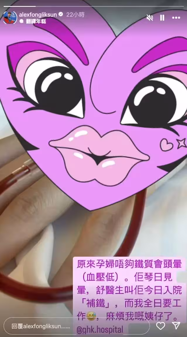 只見影片中,方力申為葉萱遮住樣子,但仍可見她躺在病床,手背插著針正在輸入靜脈注射鐵劑,看起來很像輸血。片中有一把女聲說針頭很粗,問到葉萱痛不痛,有沒有話想跟老公說,葉萱隨即開口:「快點回來!」方力申聽完一定很心痛。