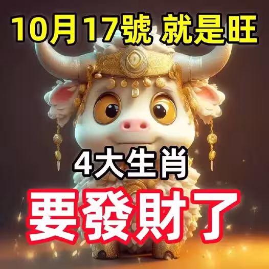 在10月17日這個特別的日子,有4大生肖將迎來財運高漲的好運勢,財富滾滾而來,事業上也能順風順水!以下是這4大生肖及其即將到來的幸運趨勢:
