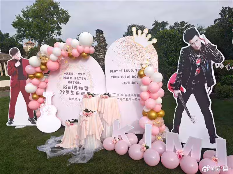 而粉絲也依循往年慣例,將墓園布置成粉色海洋,鮮花與氣球交織,呼應他生前最愛的色調。