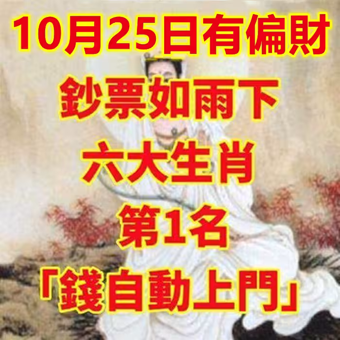 10月25日有偏財,鈔票如雨下的六大生肖,第1名「 錢自動上門 」