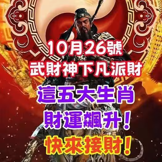 10月26號,武財神下凡派財,這五大生肖財運飆升!快來接財