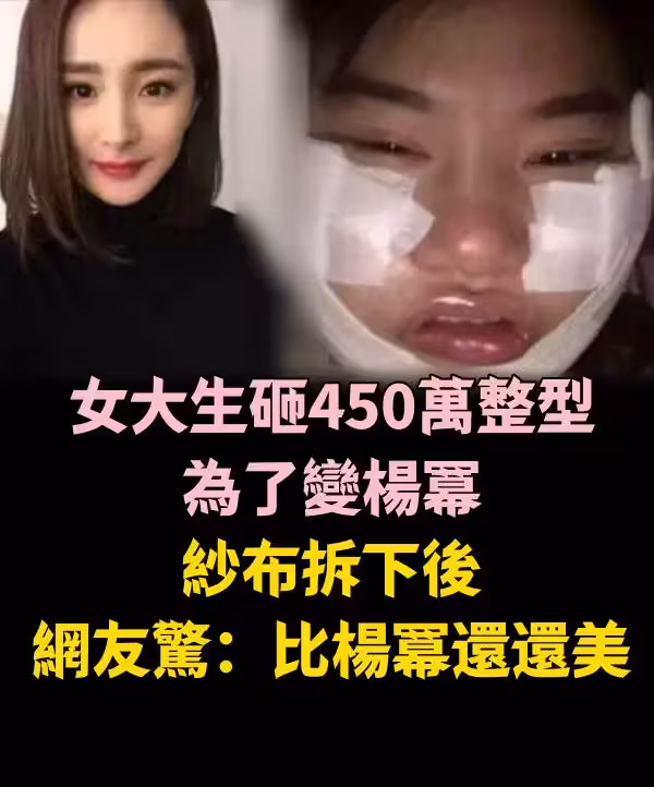 女大生「砸450萬整型」為了變楊冪, 紗布拆下後,網友驚:比楊冪還還美