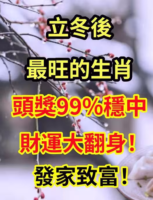立冬後最旺的生肖!「頭獎99%穩中」財運大翻身,發家致富!