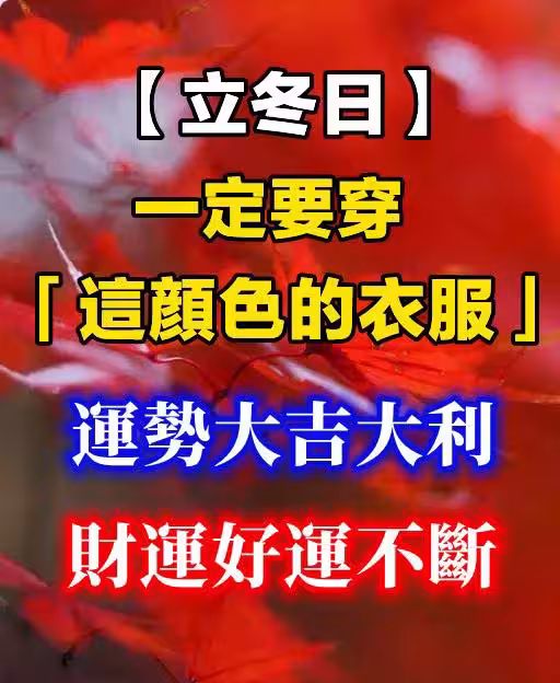 【立冬日】一定要穿「這個顏色的衣服」運勢大吉大利, 健康好運不斷~